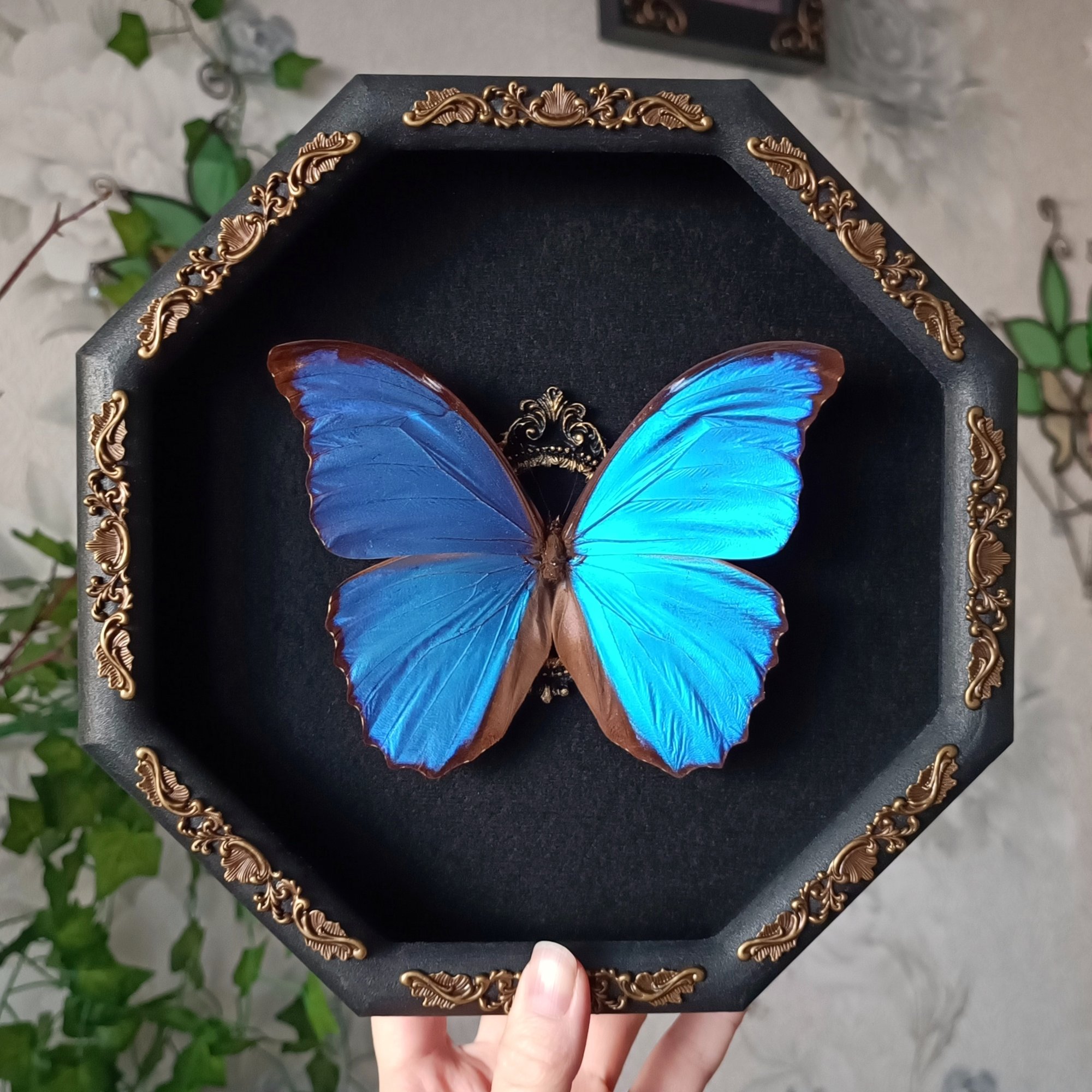 It is 100% handmade work that includes preserved butterfly, frame, painting, and decor. This frame is unique and sold as a single copy.