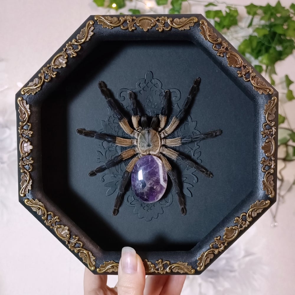 It is 100% handmade work that includes preserved spider, frame, painting, and decor. This frame is unique and sold as a single copy.
